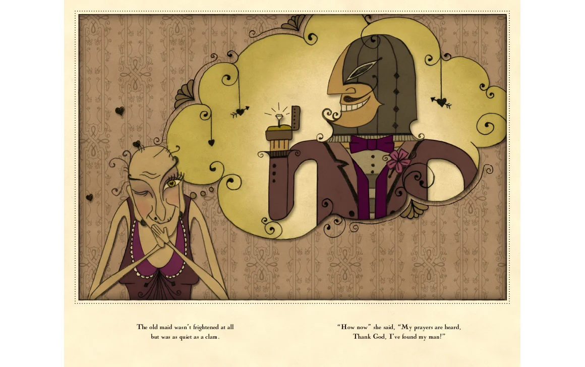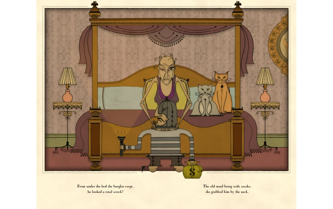 An illustrated tale of a burglar who sets out to rob a house. The victim—a lonely old maid with only her cats for protection. In this tale of humor, suspense and romance, the burglar manages to steal much more than he expected.